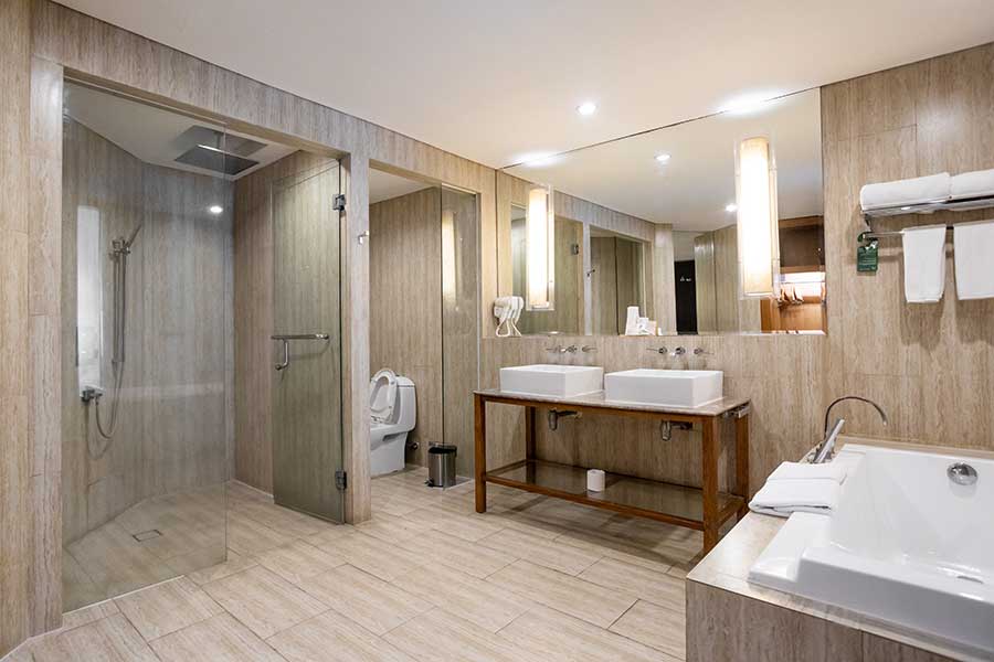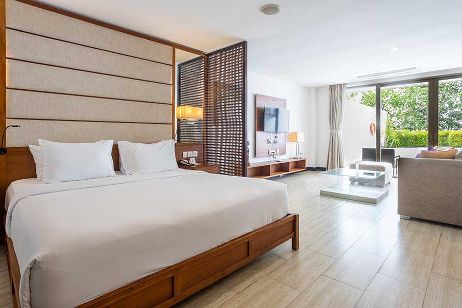 Spanning approximately 120 square metres, this suite combines modern design with tropical luxury. Featuring a spacious living area, separate bedroom, and a private pool, the One-Bedroom Suite with Pool is perfect for guests seeking privacy and relaxation in a beachfront setting.