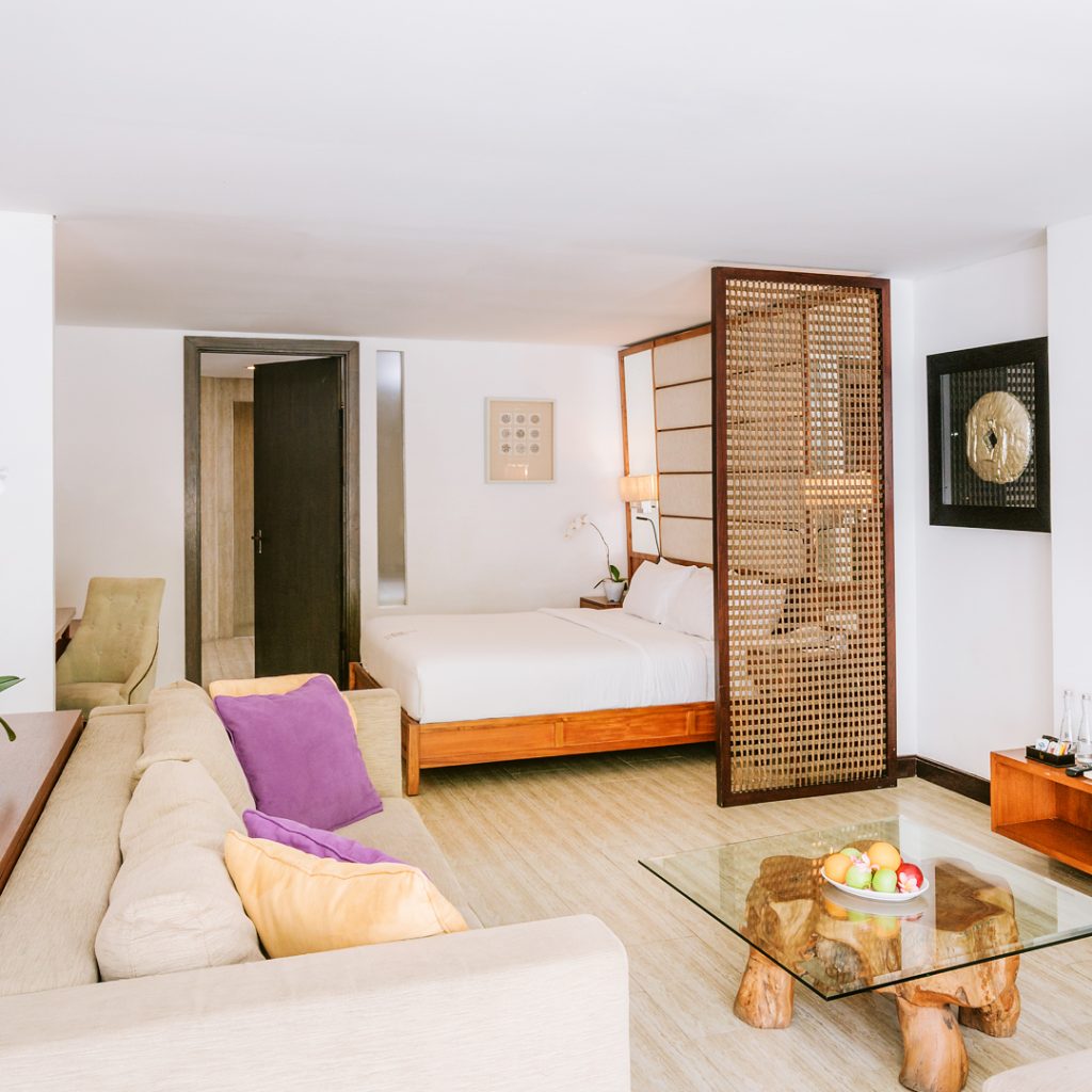 Measuring 85 square metres, our One-Bedroom Suites are luxurious, comfortable and spacious. Each bedroom has a King-size bed and a living room fitted with a comfortable work desk, a large 42-inch flat screen-television and wireless broadband Internet access. Stylish furnishings provide guests with the ultimate in luxury using modern technology and a media hub. These suites have balconies either overlooking the tropics of Bali or stunning garden views.