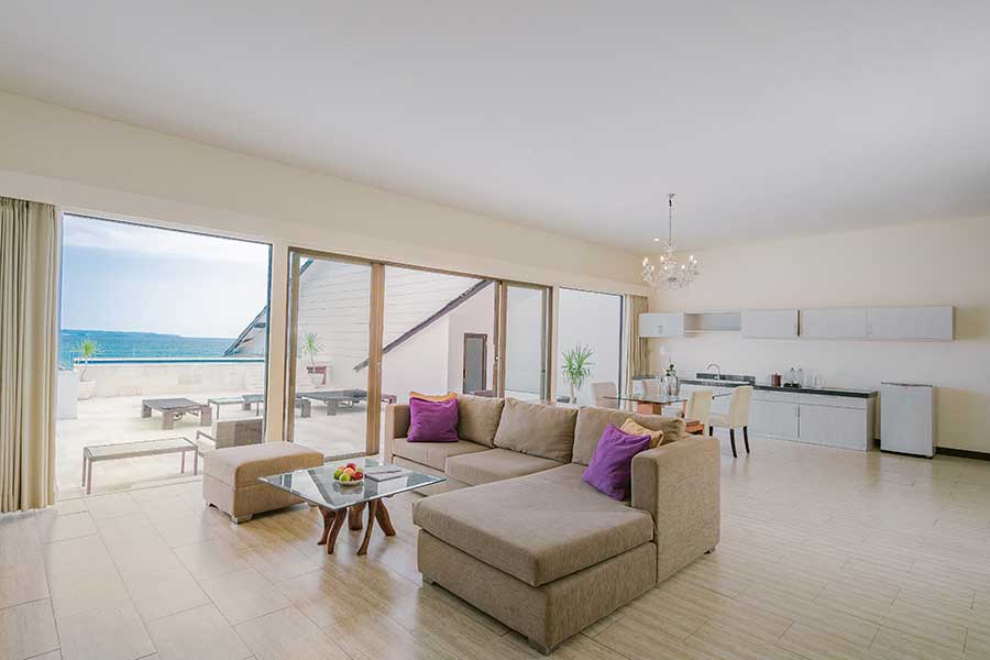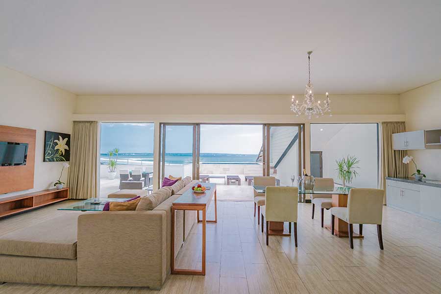 Spanning an impressive 304 square metres, the Two-Bedroom Penthouse offers elevated beachfront living. Located on the top floor, it features panoramic ocean views, a private pool, expansive living spaces, and stylish interiors—ideal for families or groups seeking luxury and privacy.